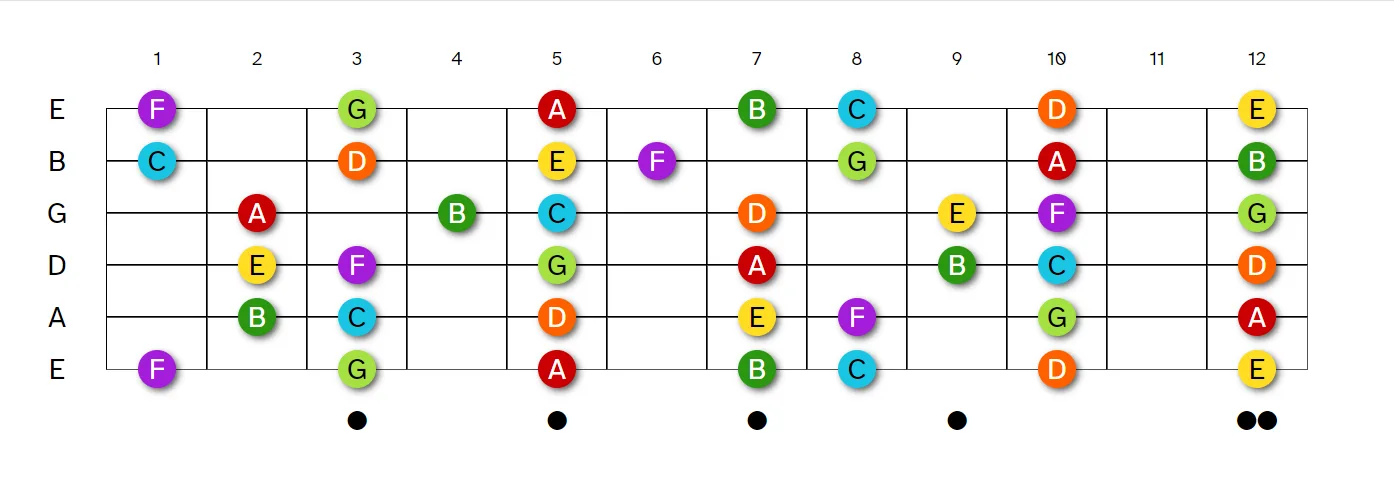 Set up your custom reference diagram, it displays all 12 notes on the fretboard, hopefully provides better accessibility when using this method of learning the fretboard. Works well for guitars, violins and other stringed instruments alike.